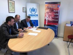 Την Τρίτη, 19 Φεβρουαρίου 2019, υπεγράφη η επέκταση του Πρωτοκόλλου Συνεργασίας μεταξύ της Σχολής Ανθρωπιστικών Επιστημών του Πανεπιστημίου Αιγαίου, της Περιφερειακής Διεύθυνσης Εκπαίδευσης Νοτίου Αιγαίου και της Ύπατης Αρμοστείας του ΟΗΕ για τους Πρόσφυγες, το οποίο είχε αρχικά υπογραφεί σε δημόσια εκδήλωση την 29/5/2018. Το Πρωτόκολλο Συνεργασίας υπεγράφη από τους κ.κ. Ιωάννη Σεϊμένη, Κοσμήτορα της Σχολής Ανθρωπιστικών Επιστημών, Βασίλειο Καραγιάννη, Προϊστάμενο της Περιφερειακής Διεύθυνσης Εκπαίδευσης Νοτίου Αιγαίου και Philippe Leclerc, Αντιπρόσωπο της Ύπατης Αρμοστείας του ΟΗΕ για τους Πρόσφυγες στην Ελλάδα. Το Πρωτόκολλο αποτελεί ένα σημαντικό εργαλείο ανάπτυξης και στήριξης εκπαιδευτικών προγραμμάτων που ανταποκρίνονται στις ανάγκες των μεταναστών/τριών και προσφύγων, όχι μόνο της Ρόδου, αλλά και ολόκληρου του Αιγαίου.